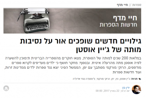 גילויים חדשים שופכים אור על נסיבות מותה של ג יין אוסטן וואלה תרבות By ירין כץ|2017-03-22T01:59:53+02:0022 במרץ 2017|0 Comments שיתוף: FacebookXRedditLinkedInTumblrPinterestVkEmail Leave A Comment לבטלComment Save my name, email, and website in this browser for the next time I comment. Δ